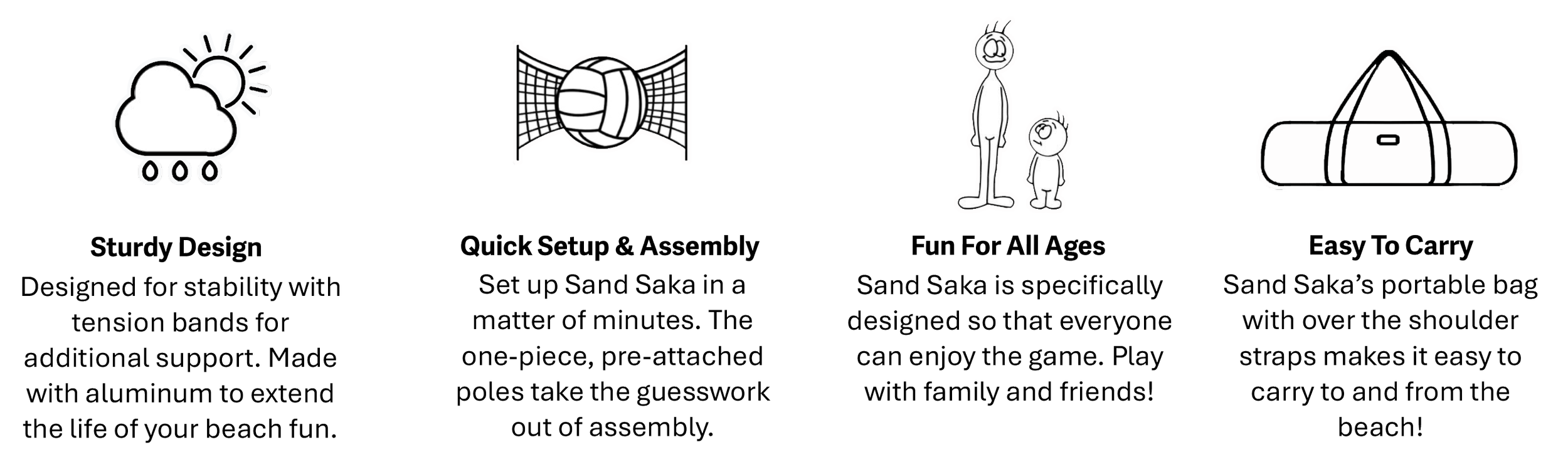 Sand Saka™ is a fun-filled game that blends the best of soccer and volleyball, bringing family and friends together for competitive fun. It's easy to set up and play anywhere on the sand. It's the perfect way to turn any beach day into game day!