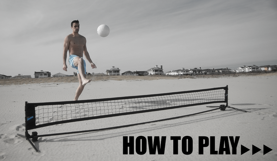 Two teams of 1-2 players compete to kick the ball over the net so the other team can't return it. The game is played with a 10ft long, 10in high net.